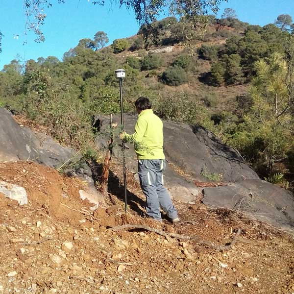 Toma de coordenadas de las prospecciones una vez realizadas, y si fuera preciso para grandes parcelas, además se realiza un replanteo previo por topógrafo.